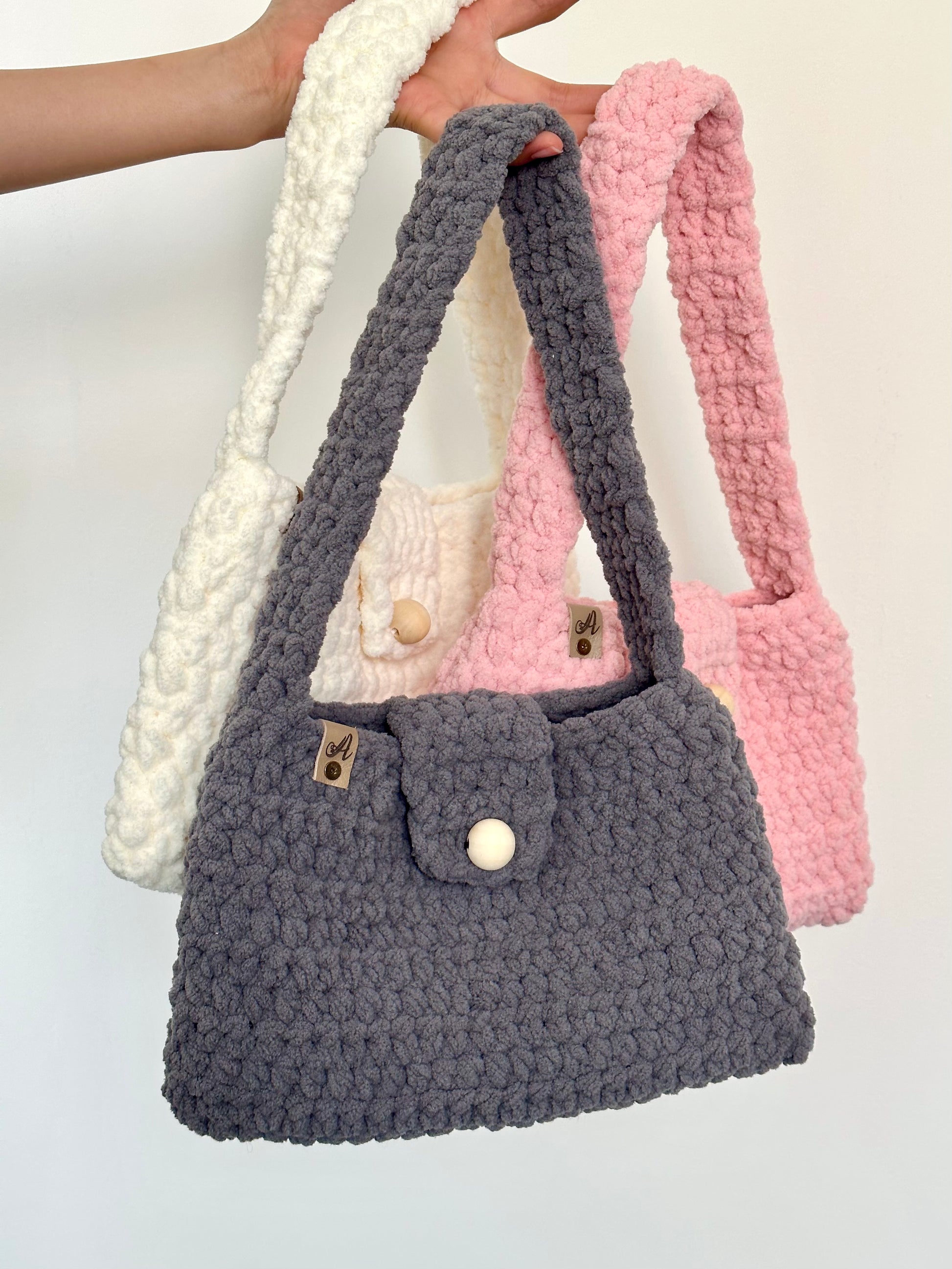 This is the cutest, fluffiest, softest, and most stylish crochet cloud bag you’ll ever own! Made with the most comfortable Acrylic blanket yarn, this bag will be a joy to carry around, and is the perfect size to be worn on your shoulder 🤍